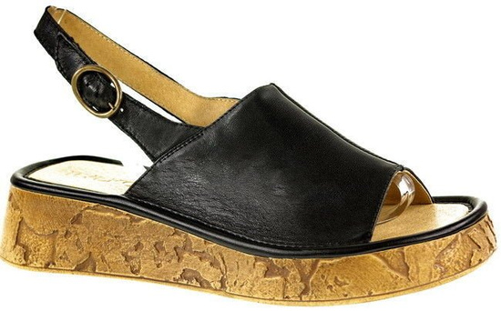 Sandały firmy Ryłko w kolorze czarnym w całości wykonane ze skóry naturalnej, na całej długości gąbka poprawiająca komfort użytkowania.